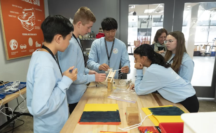紫色团队从小规模做起,采纳了 SERC 教育者的反馈意见;而金色团队则绘制出新的想法,并仔细地推演了他们的结构,然后用热熔胶和胶带将各个部件连接起来。