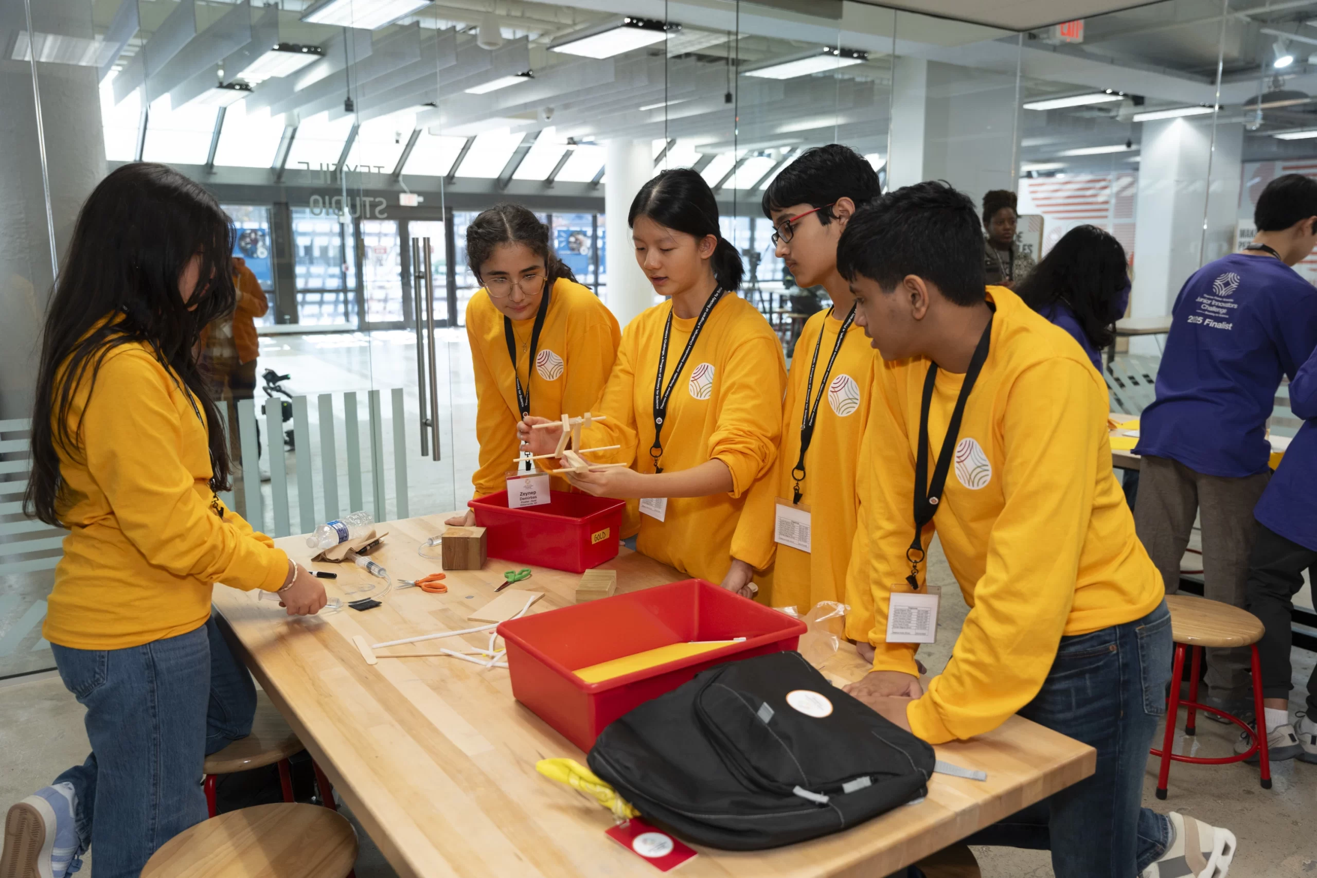接下来,决赛选手们观看了一些短片,学习仿生学——这是最终挑战的关键组成部分。他们了解到,诸如高铁和风力涡轮机等常见发明都是从自然界汲取灵感,然后分成两组,深入探索液压系统和蓝蟹。在这个挑战中,决赛选手们的任务是根据蓝蟹的解剖结构设计一个液压臂。